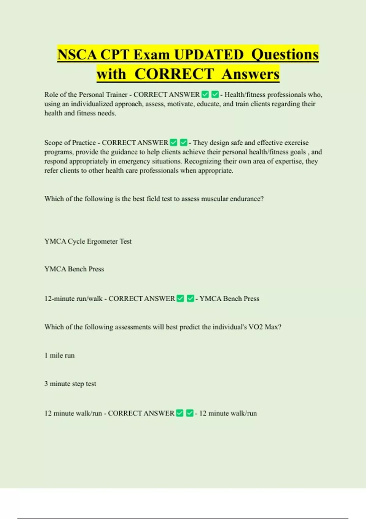 12-minute run/walk - CORRECT ANSWER - YMCA Bench Press