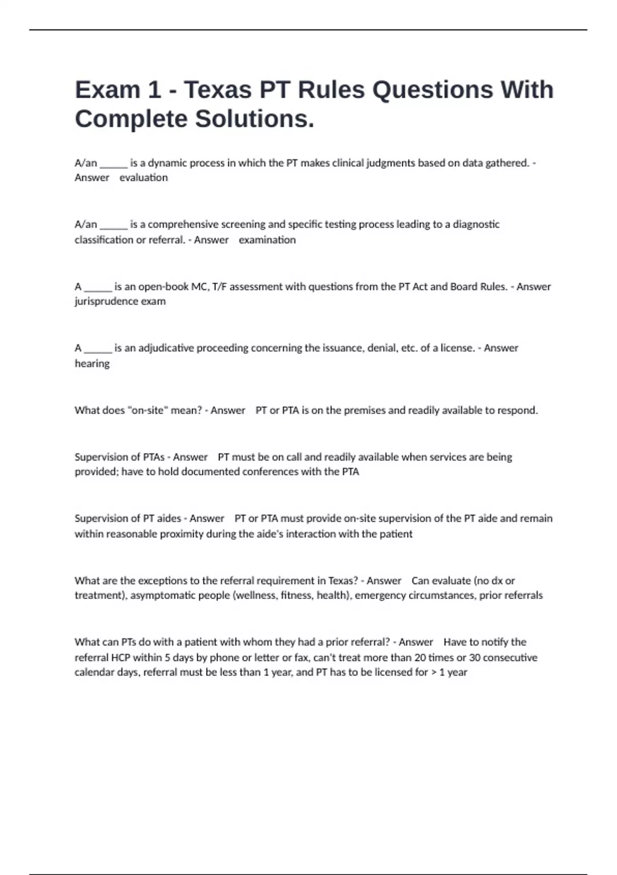 calendar days, referral must be less than 1 year, and PT has to be licensed for > 1 year