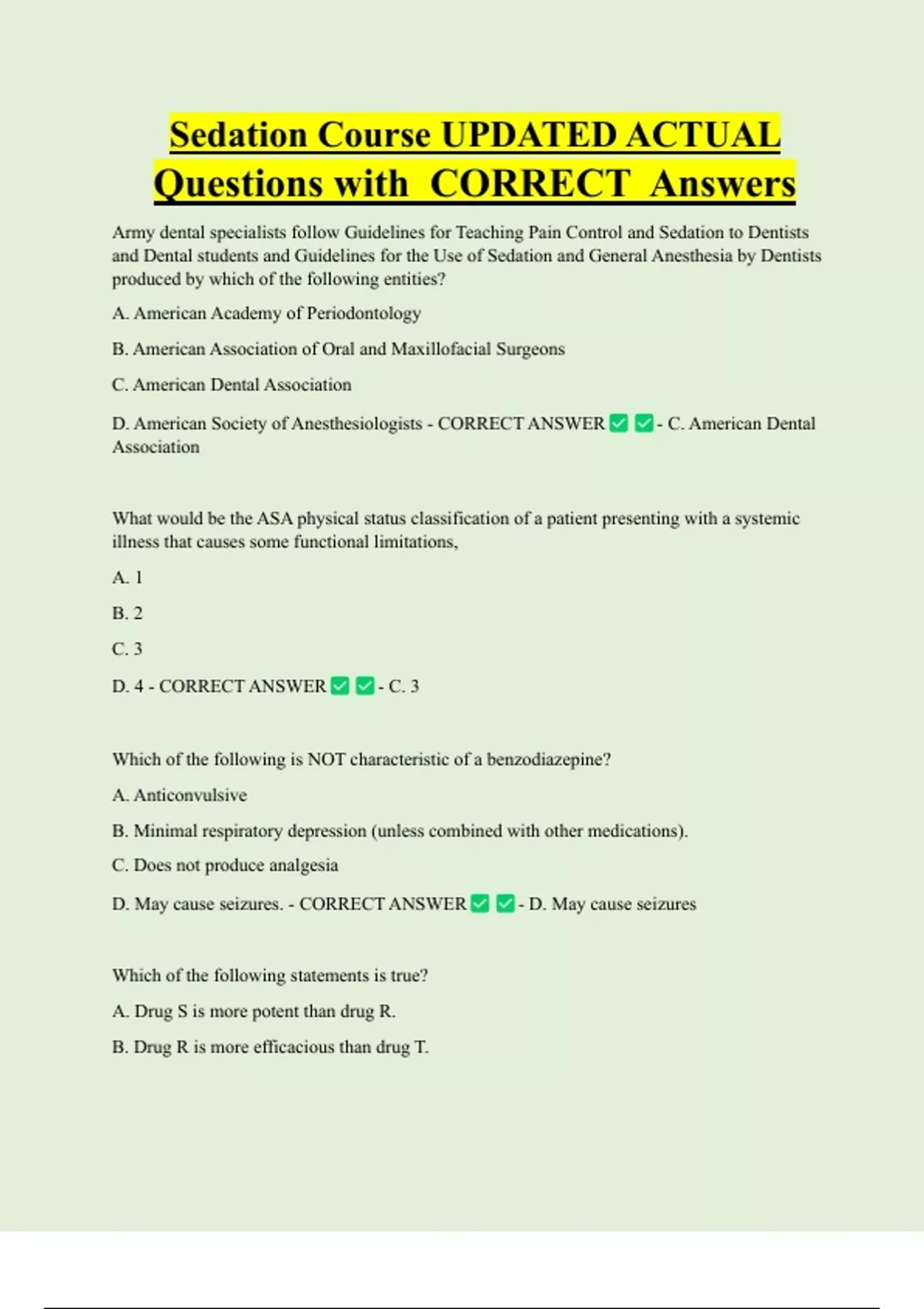 D. American Society of Anesthesiologists - CORRECT ANSWER - C. American Dental