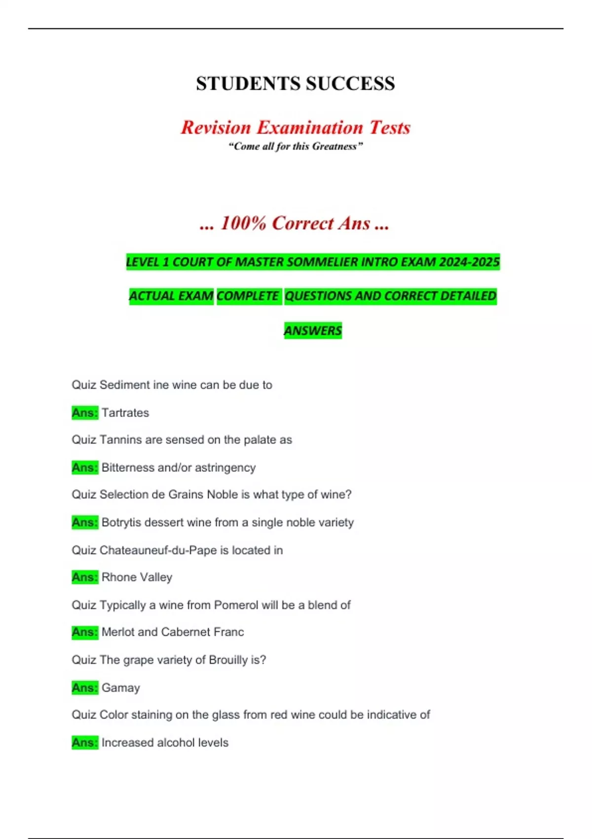 LEVEL 1 COURT OF MASTER SOMMELIER INTRO EXAM 2024-2025