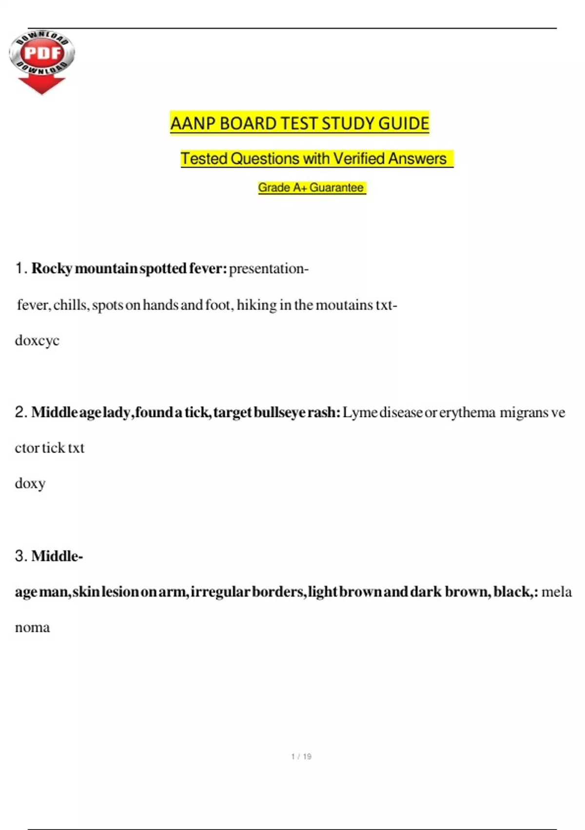 AANP BOARD TEST STUDY GUIDE Tested Questions with Verified Answers Grade A+ Guarantee
