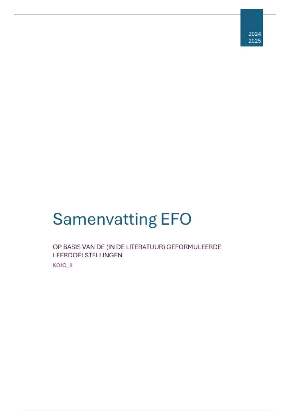 Samenvatting EFO op basis van de geformuleerde leerdoelen – Kooreman Joren