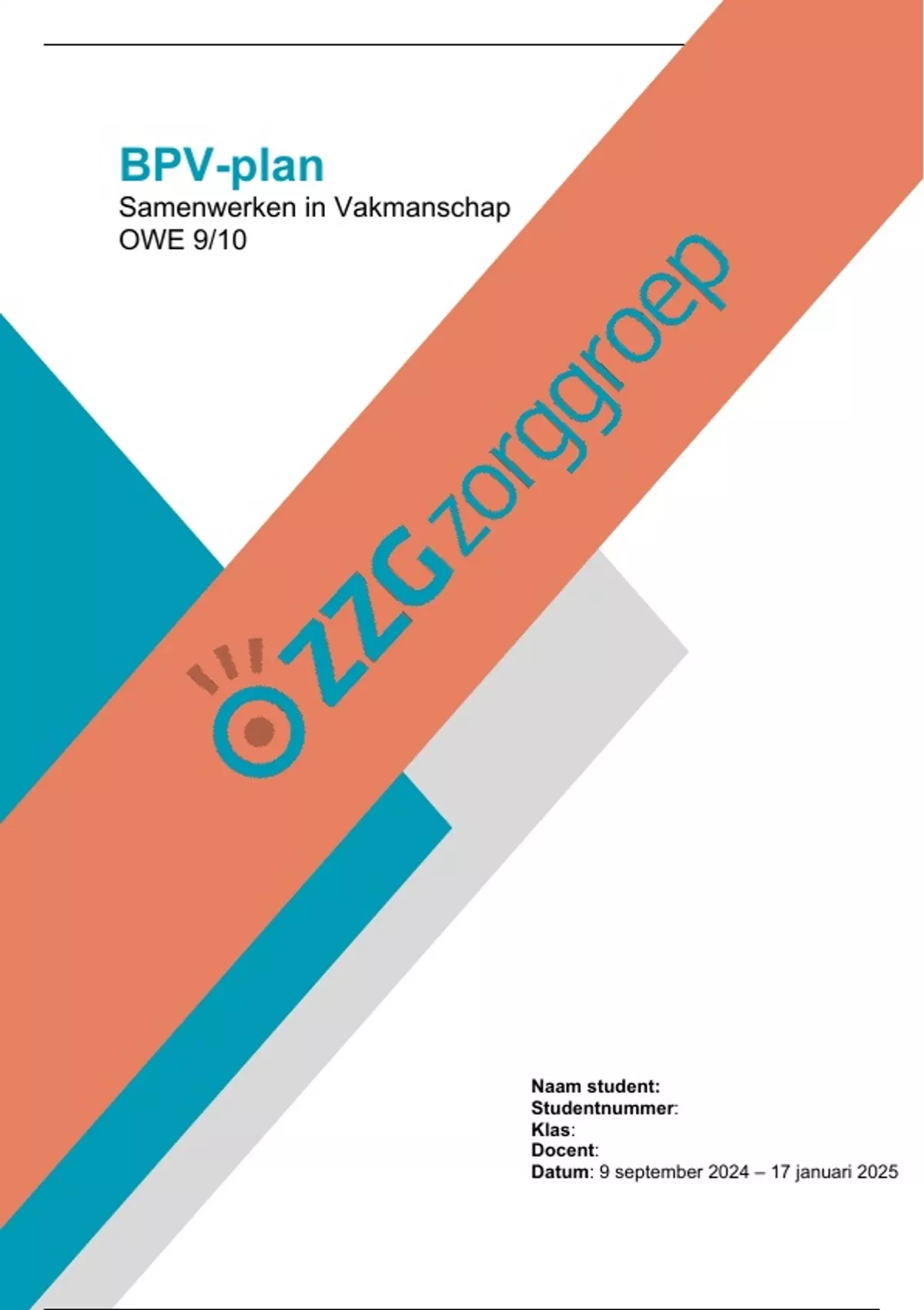 BPV-plan | ZZG-zorggroep | naam | klas | studentnummer 2