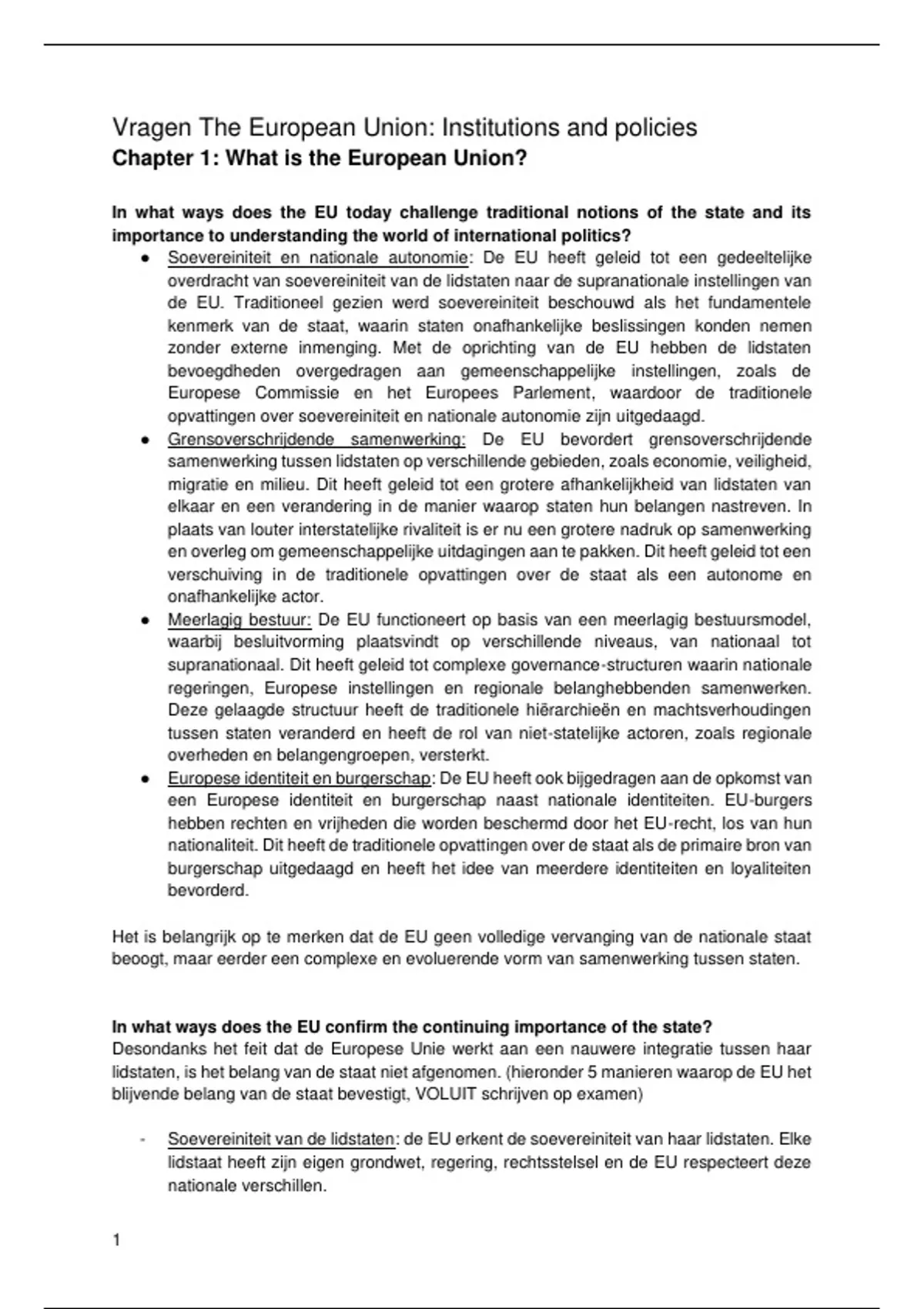 ● Soevereiniteit en nationale autonomie: De EU heeft geleid tot een gedeeltelijke