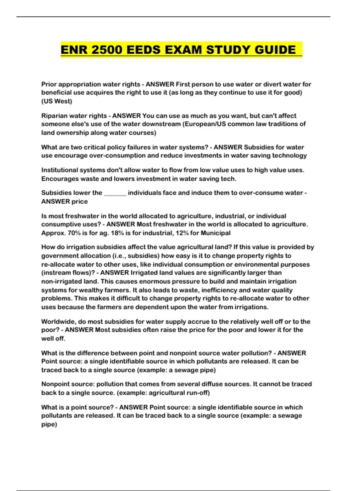 ENR 2500 EEDS EXAM STUDY GUIDE
