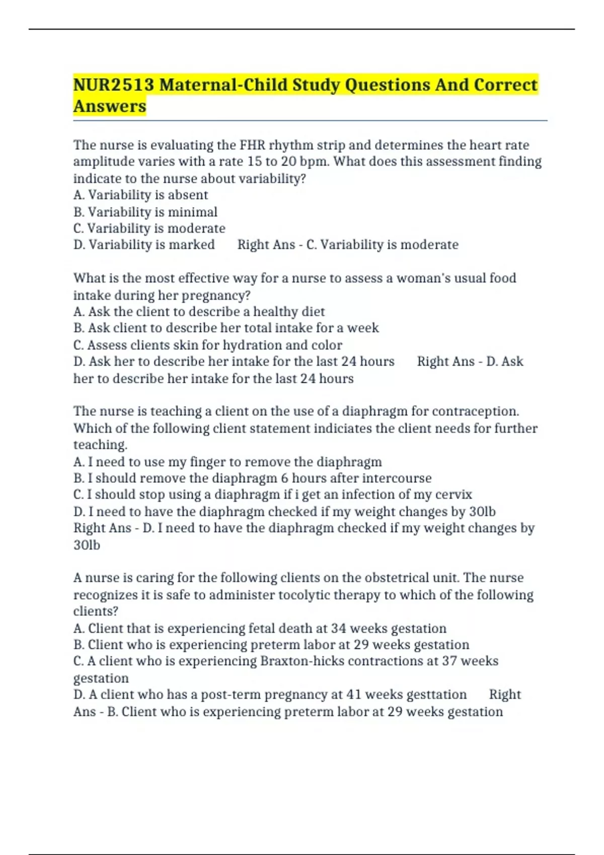 Ans - B. Client who is experiencing preterm labor at 29 weeks gestation