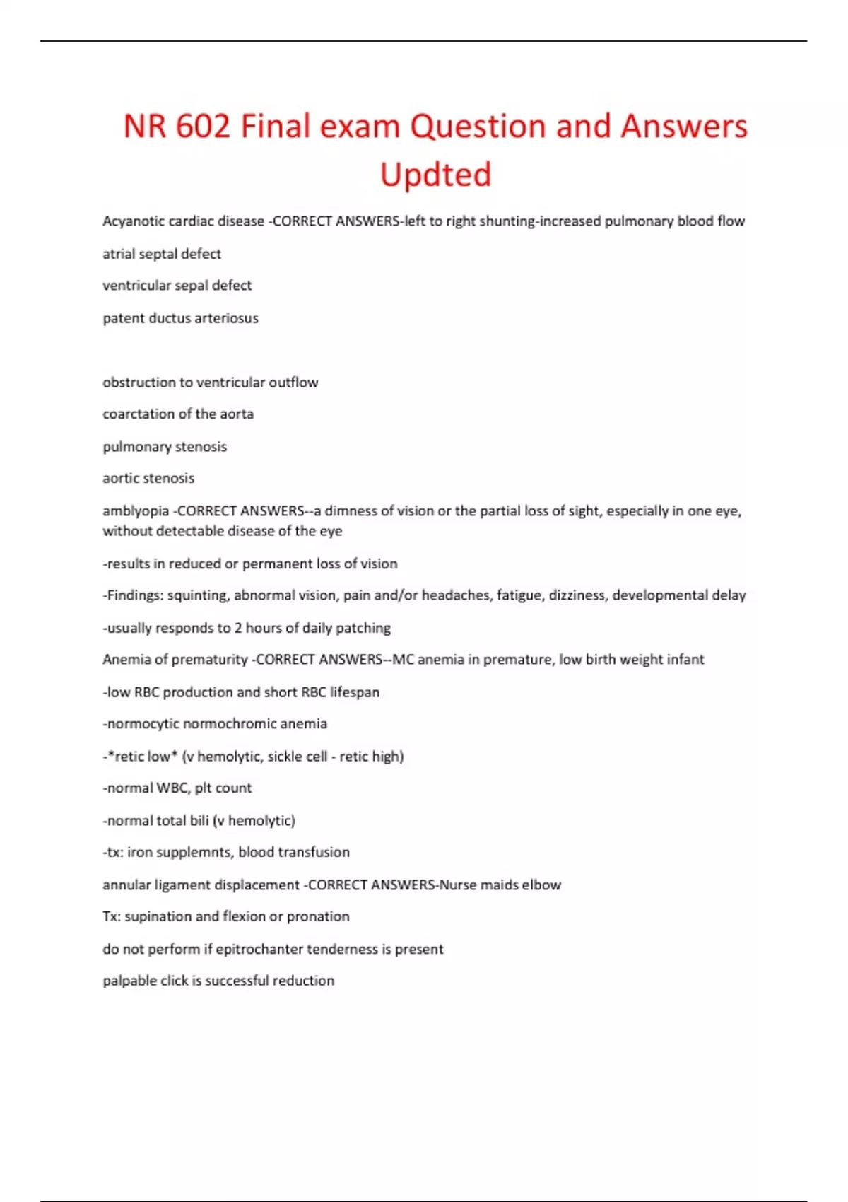 Anemia of prematurity -CORRECT ANSWERS--MC anemia in premature, low birth weight infant