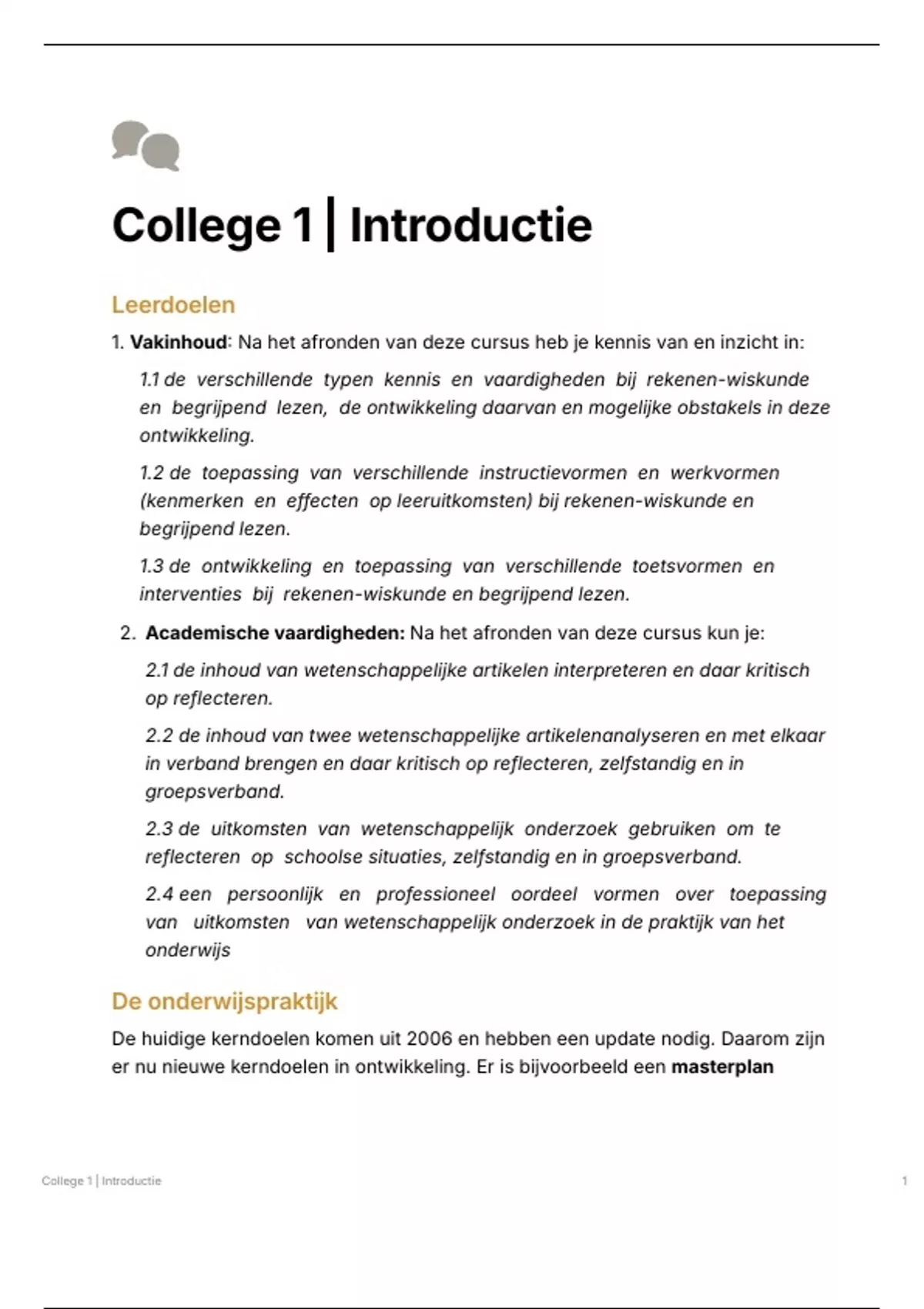 College 1 | Introductie 1
