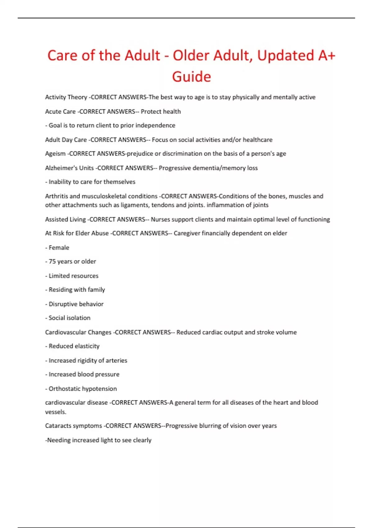 At Risk for Elder Abuse -CORRECT ANSWERS-- Caregiver financially dependent on elder