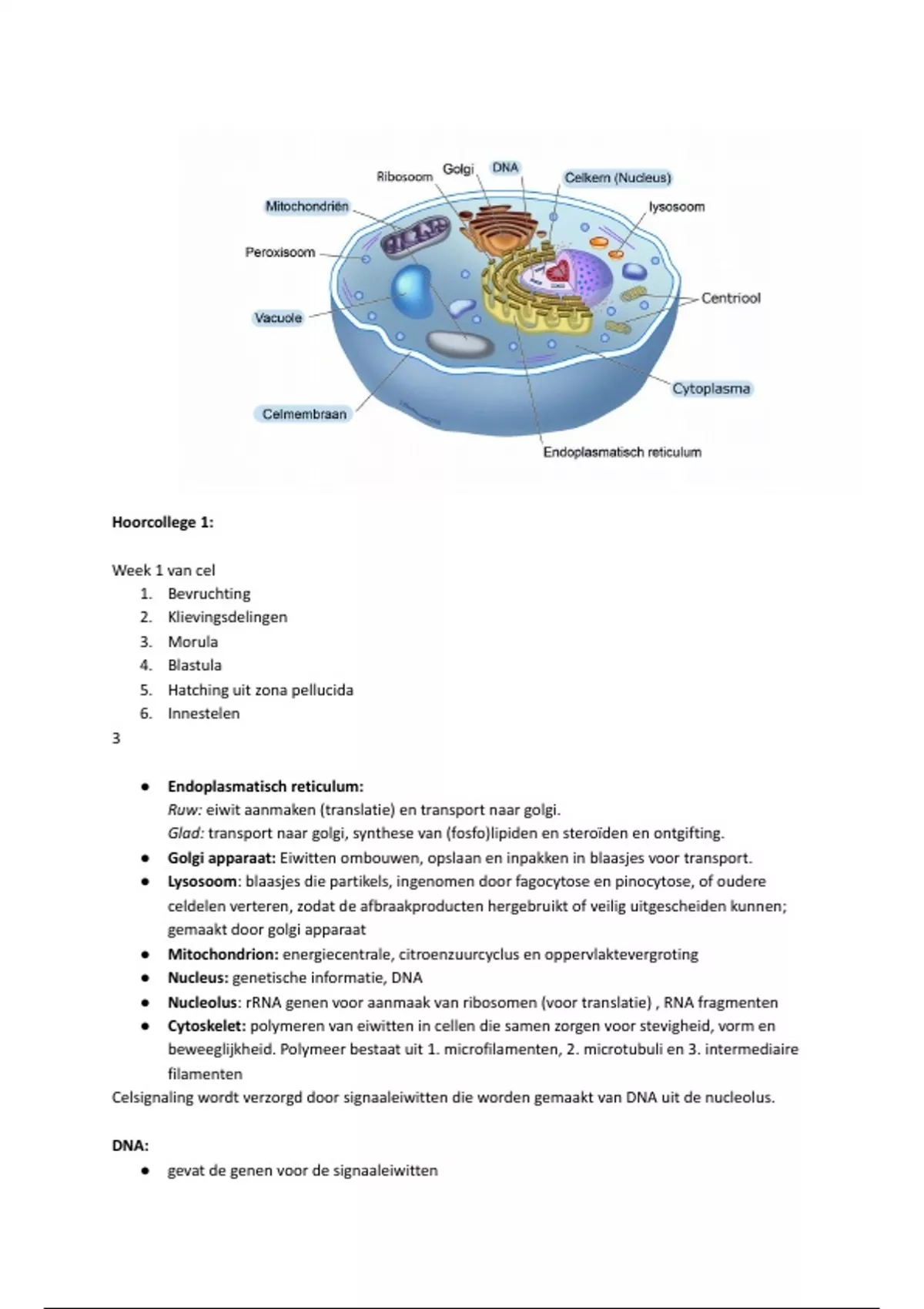 ● Nucleus: genetische informatie, DNA