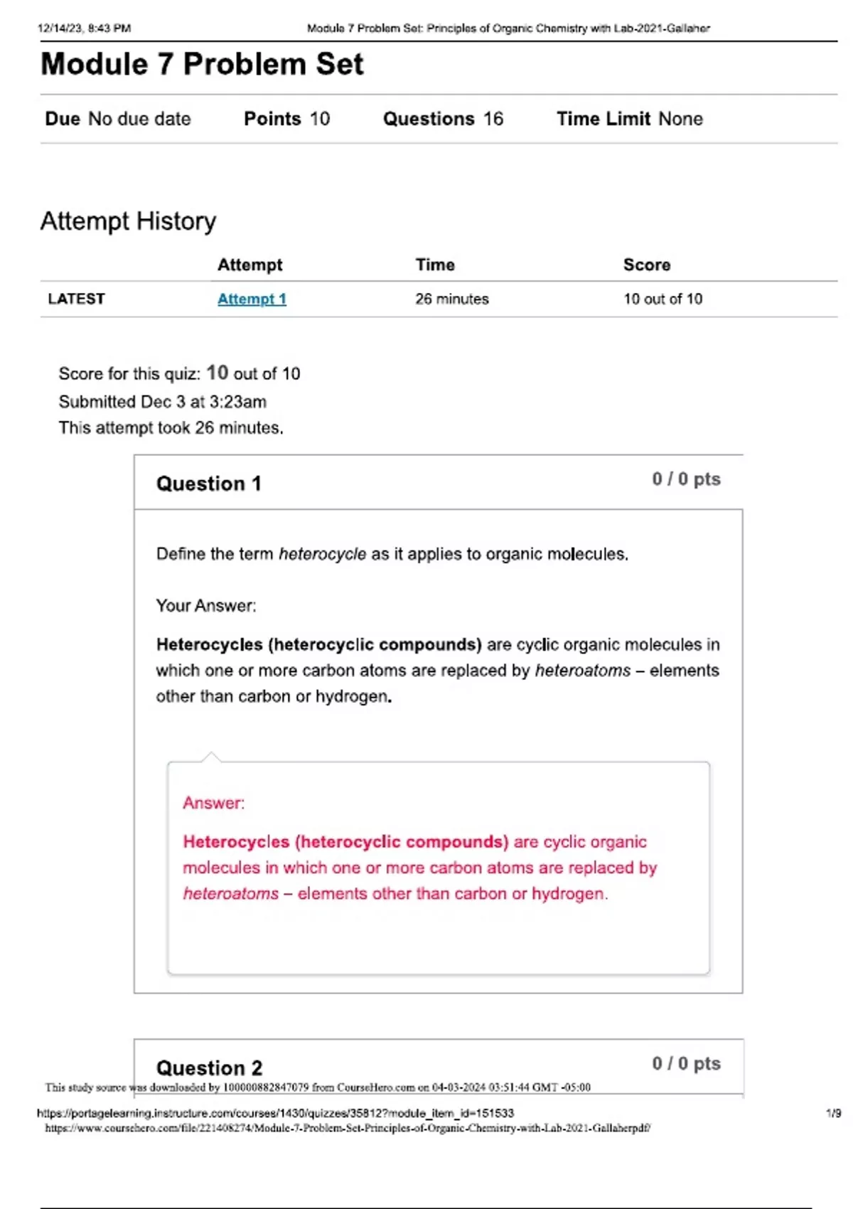 CHEM 219 Module 7 Problem Set (Latest 2024/ 2025 Update) Questions and Verified Answers| 100% Correct| Grade A+