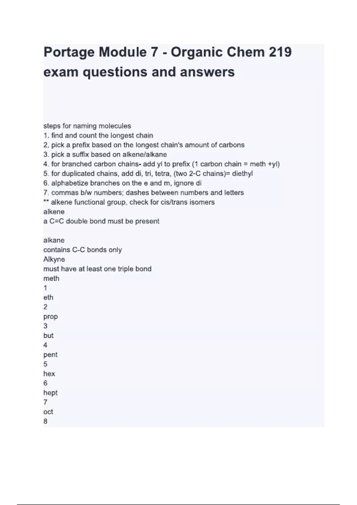 Portage Module 7 - Organic Chem 219 exam (Latest 2024/ 2025 Update) Questions and Verified Answers| 100% Correct| Grade A+