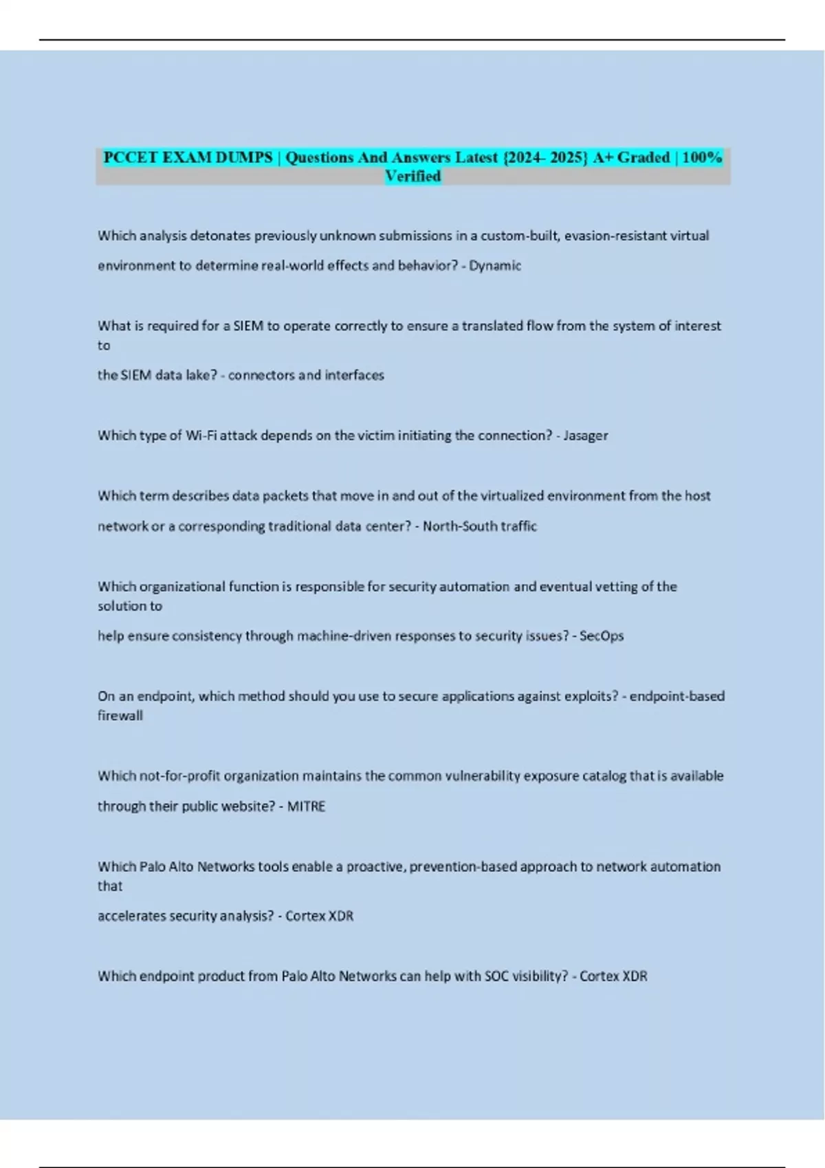 PCCET EXAM DUMPS | Questions And Answers