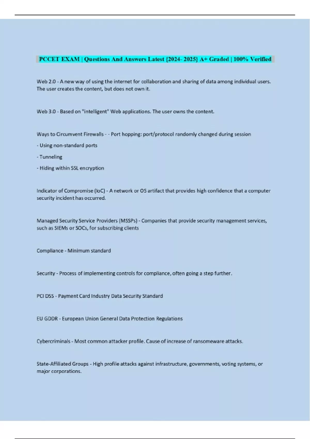 PCCET EXAM | Questions And Answers