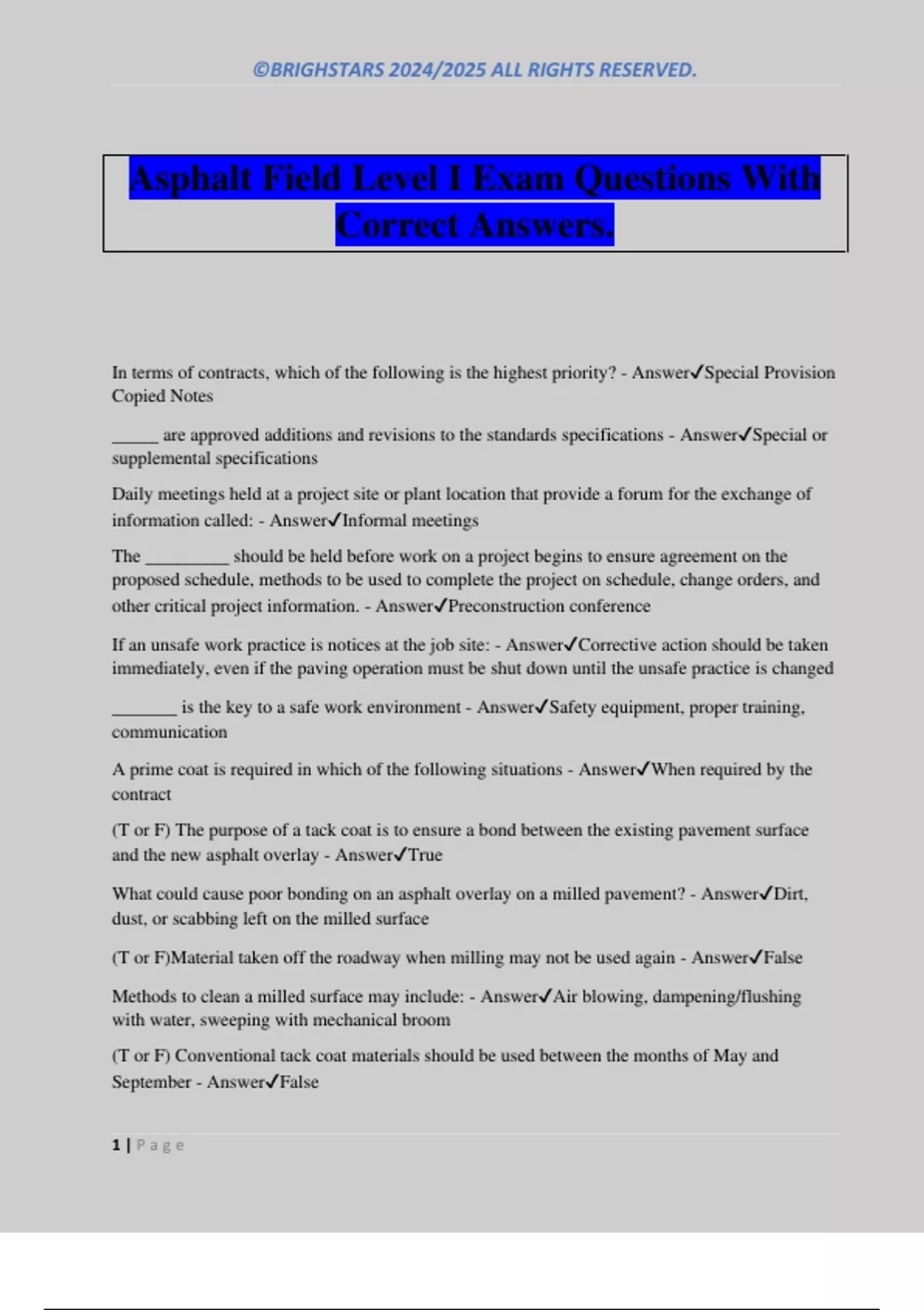 Asphalt Field Level I Exam Questions With