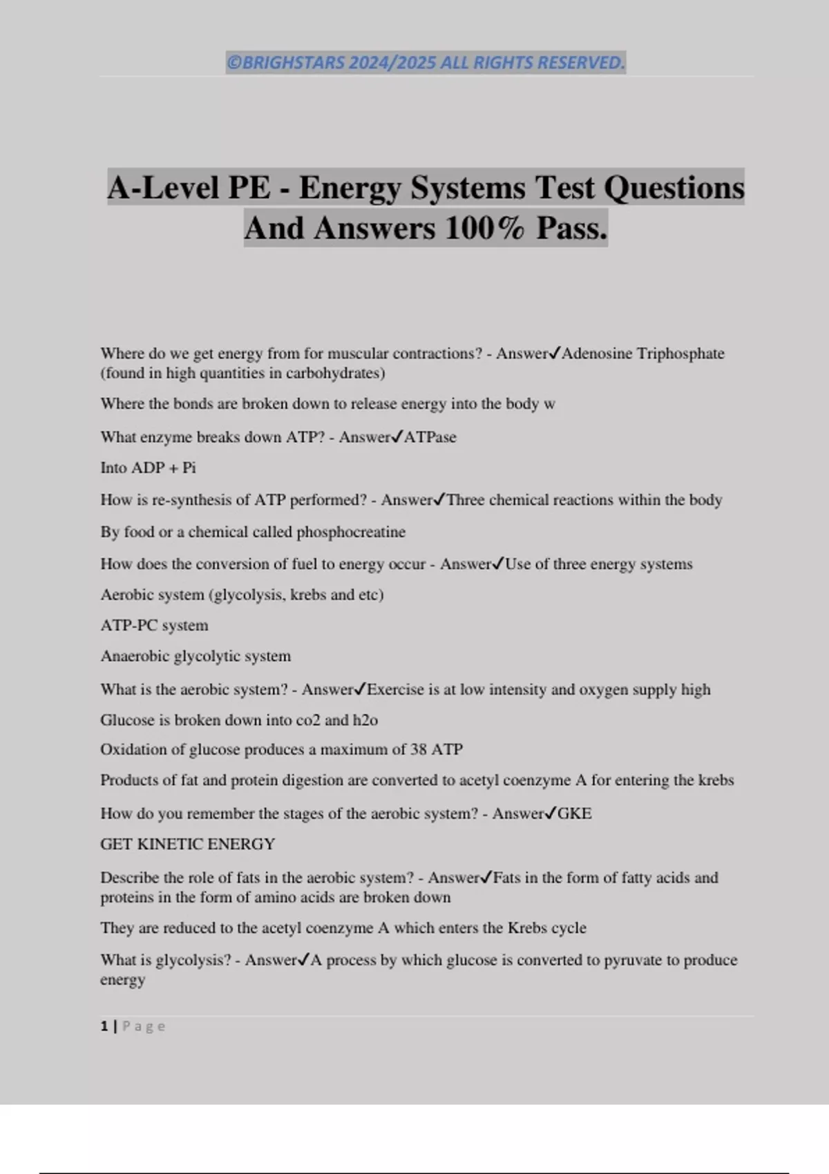 A-Level PE - Energy Systems Test Questions