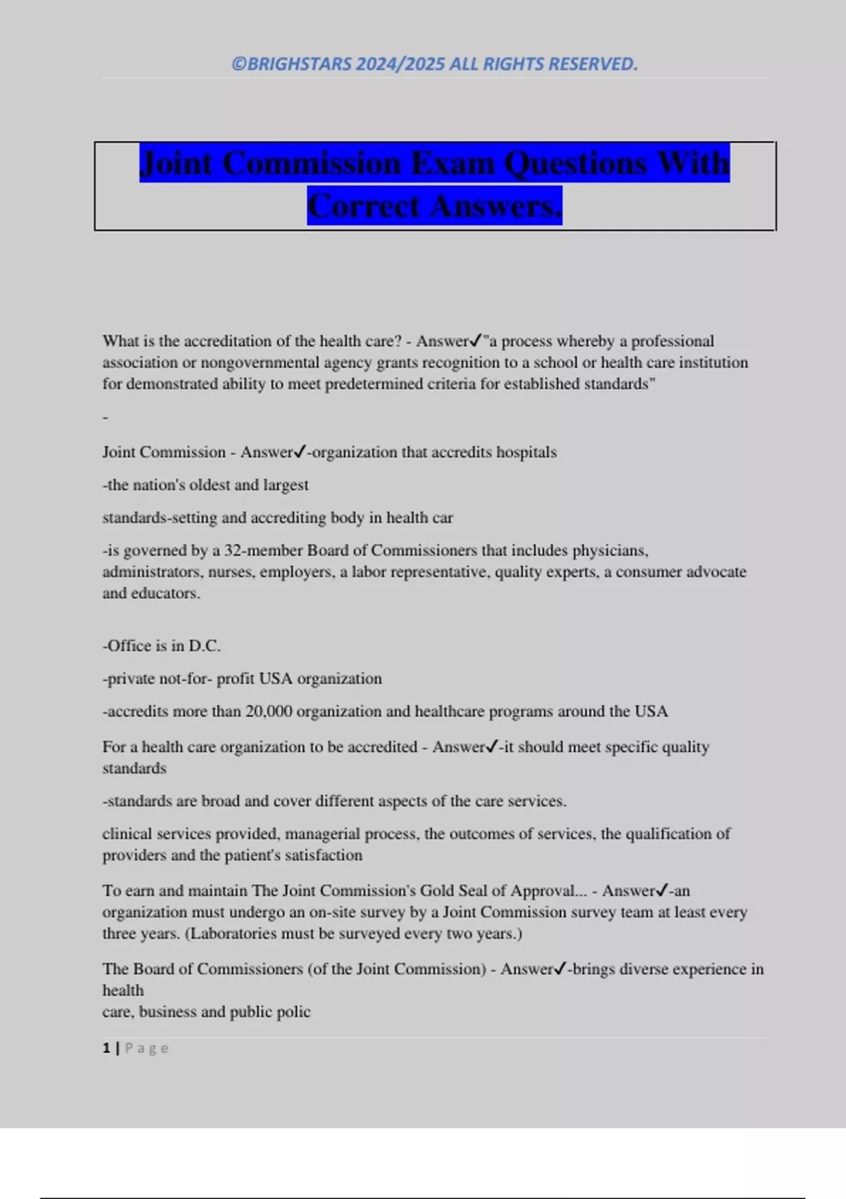 Joint Commission - Answer✔-organization that accredits hospitals