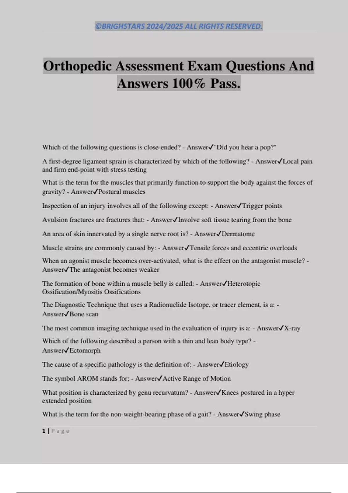 Orthopedic Assessment Exam Questions And Answers 100% Pass.