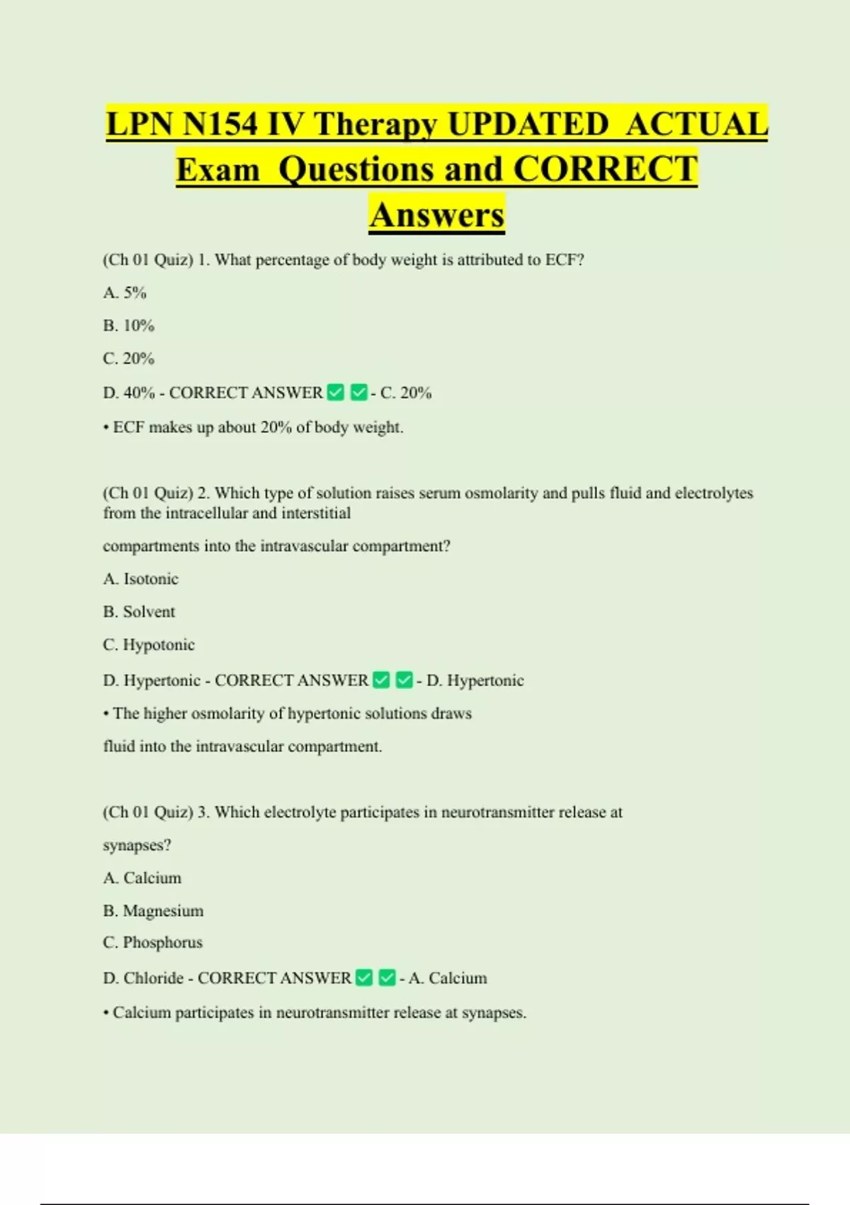 D. Chloride - CORRECT ANSWER - A. Calcium