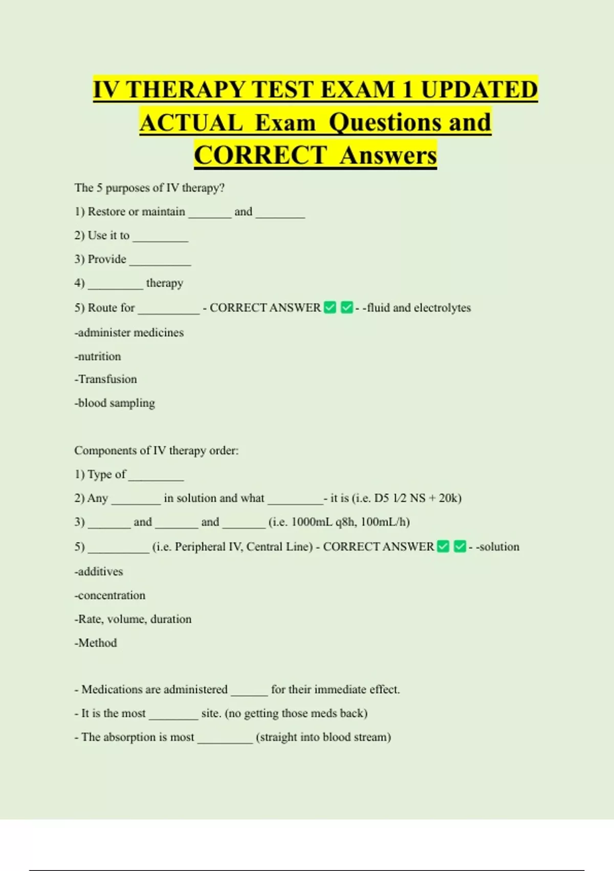 5) Route for __________ - CORRECT ANSWER - -fluid and electrolytes