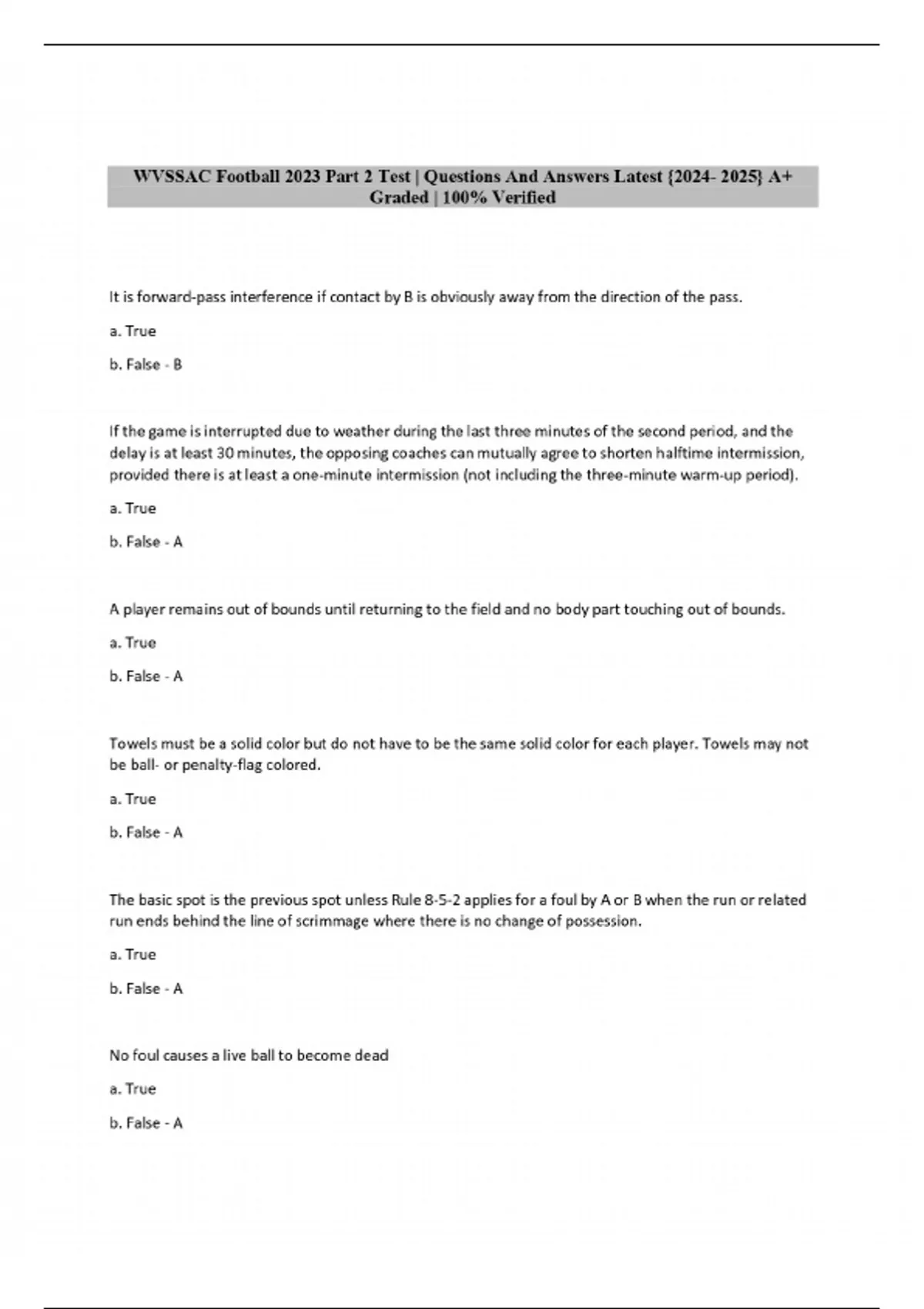 WVSSAC Football 2023 Part 2 Test | Questions And Answers