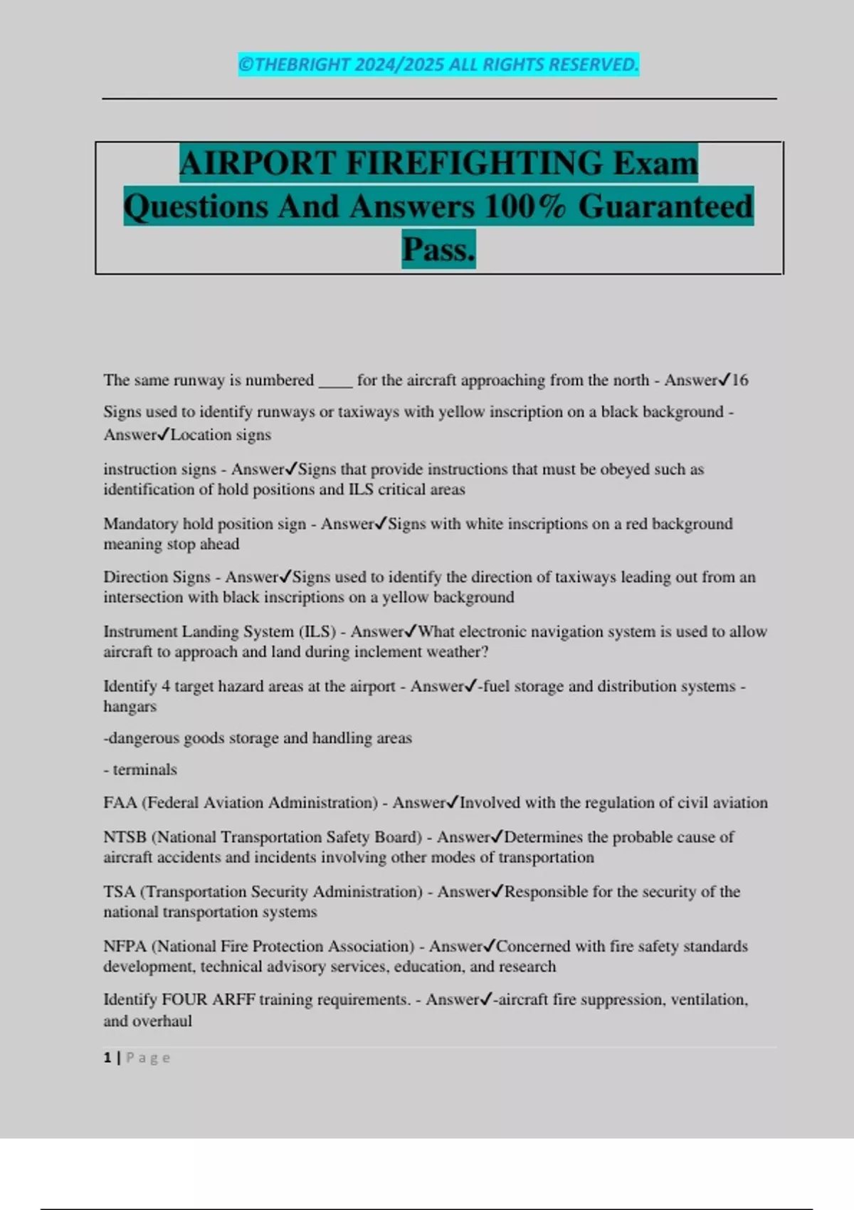 AIRPORT FIREFIGHTING Exam