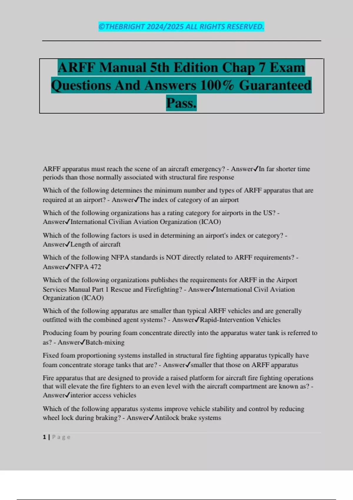 Services Manual Part 1 Rescue and Firefighting? - Answer✔International Civil Aviation