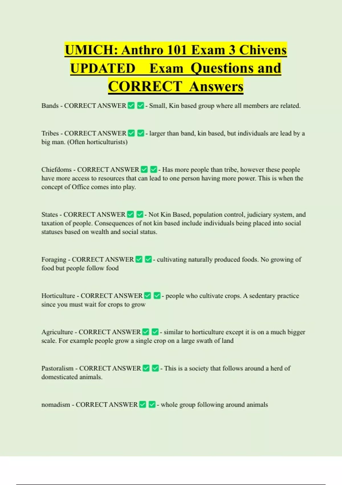 CORRECT Answers