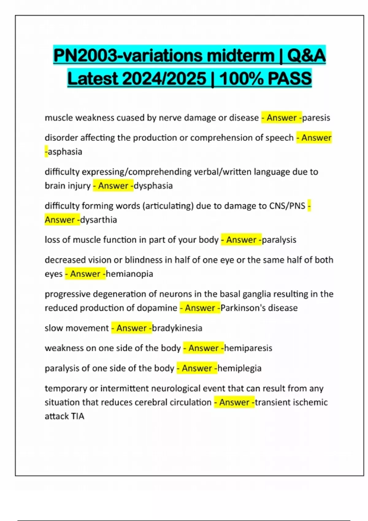 PN2003-variations midterm | Q&A Latest 2024/2025 | 100% PASS