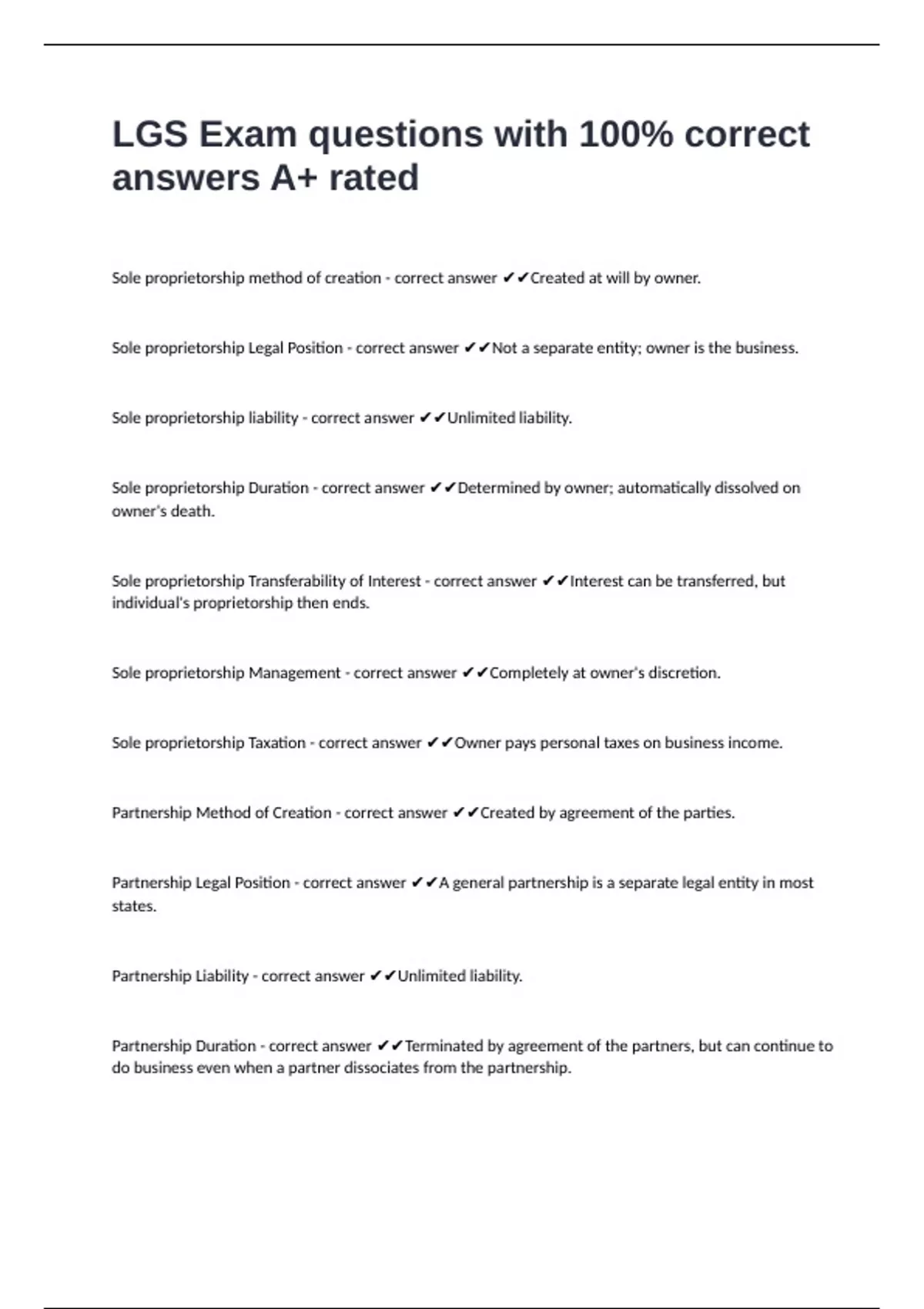 Partnership Legal Position - correct answer ✔✔A general partnership is a separate legal entity in most