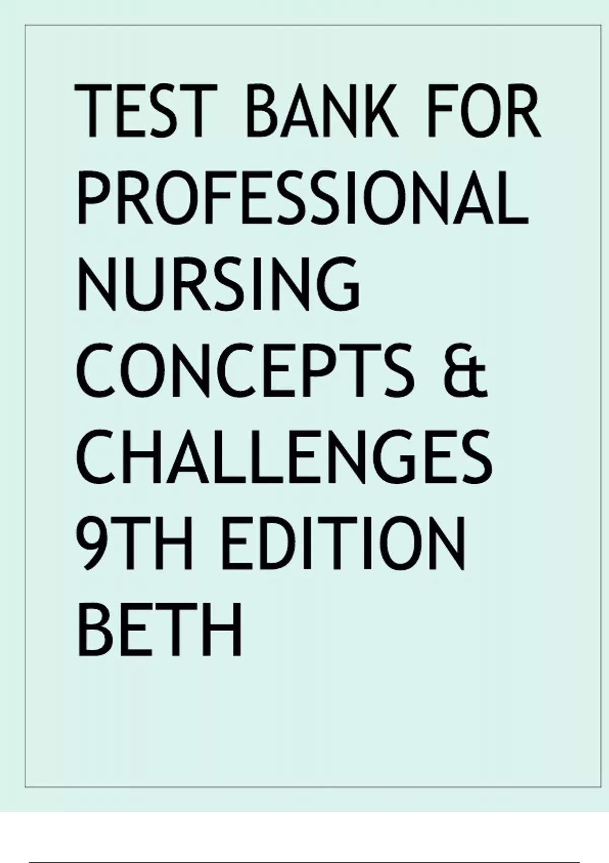 TEST BANK FOR PROFESSIONAL NURSING CONCEPTS & CHALLENGES 9TH EDITION BETH.
