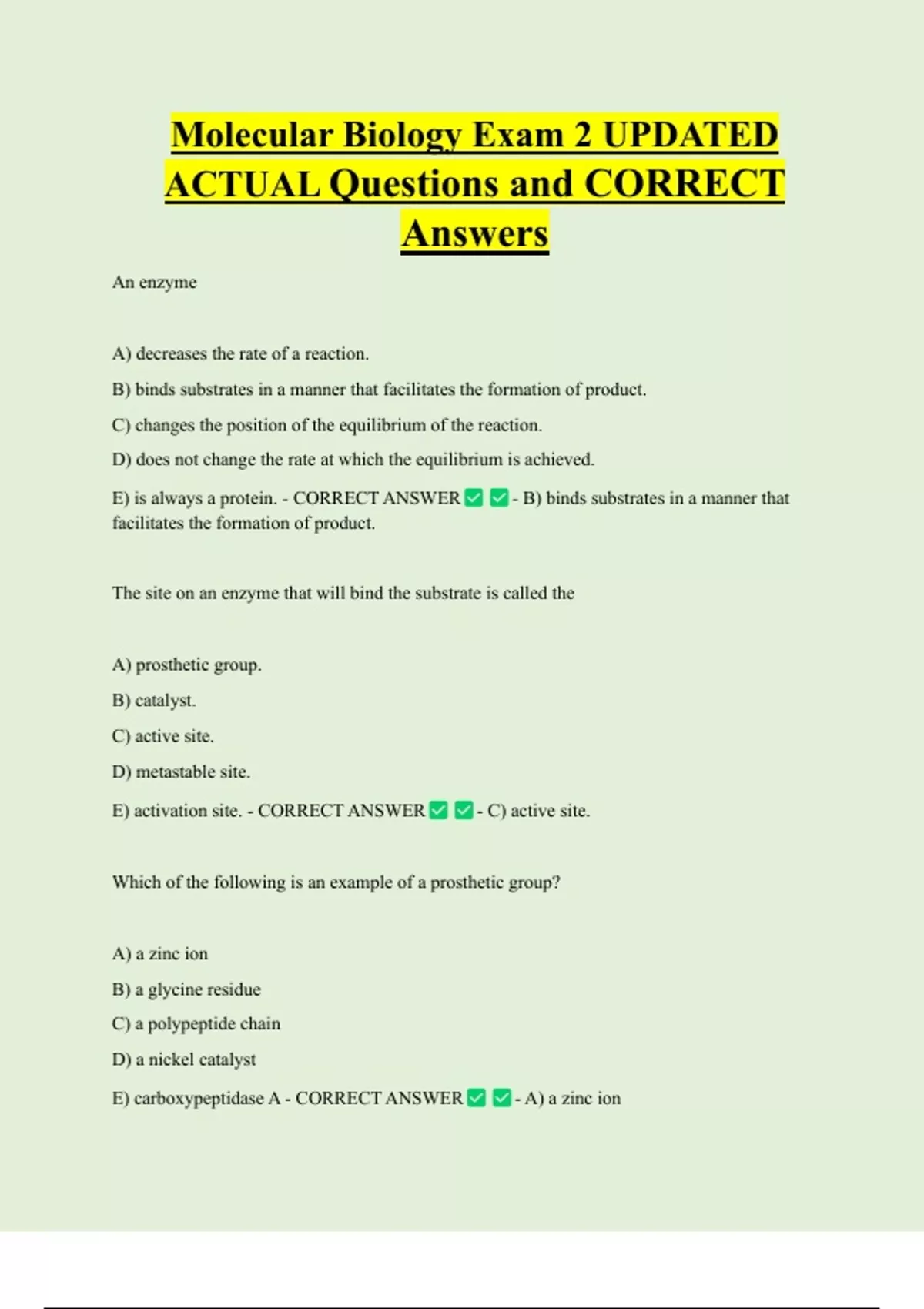 E) is always a protein. - CORRECT ANSWER - B) binds substrates in a manner that