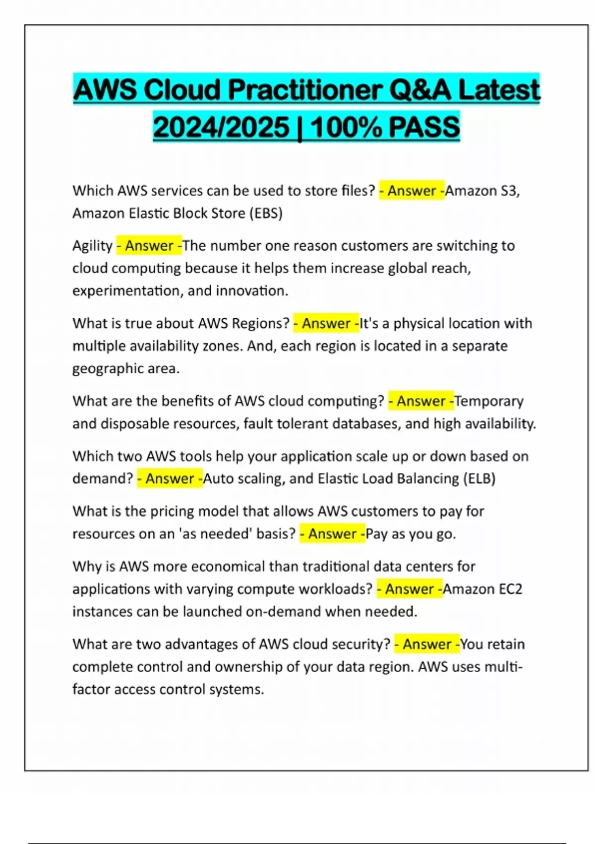 AWS Cloud Practitioner Q&A Latest 2024/2025 | 100% PASS