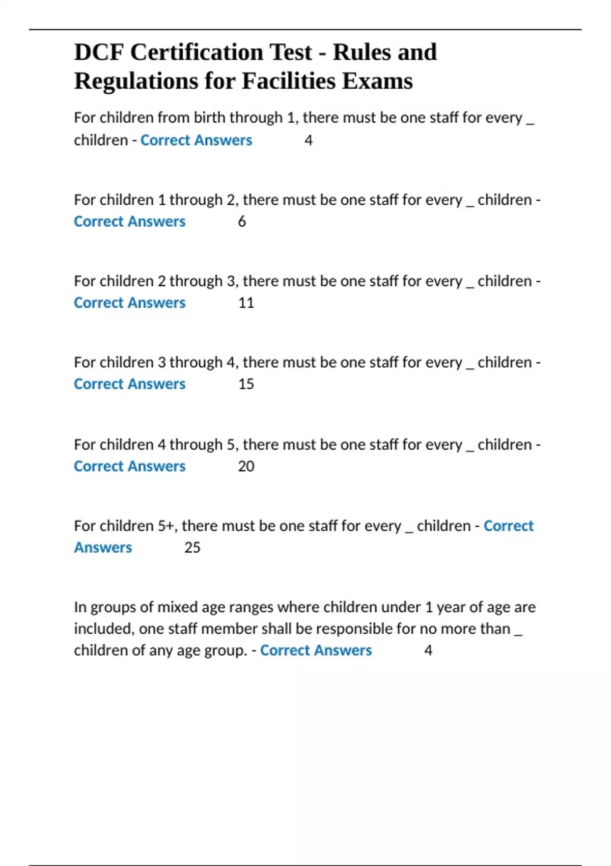 DCF Certification Test - Rules and Regulations for Facilities Exams.docx