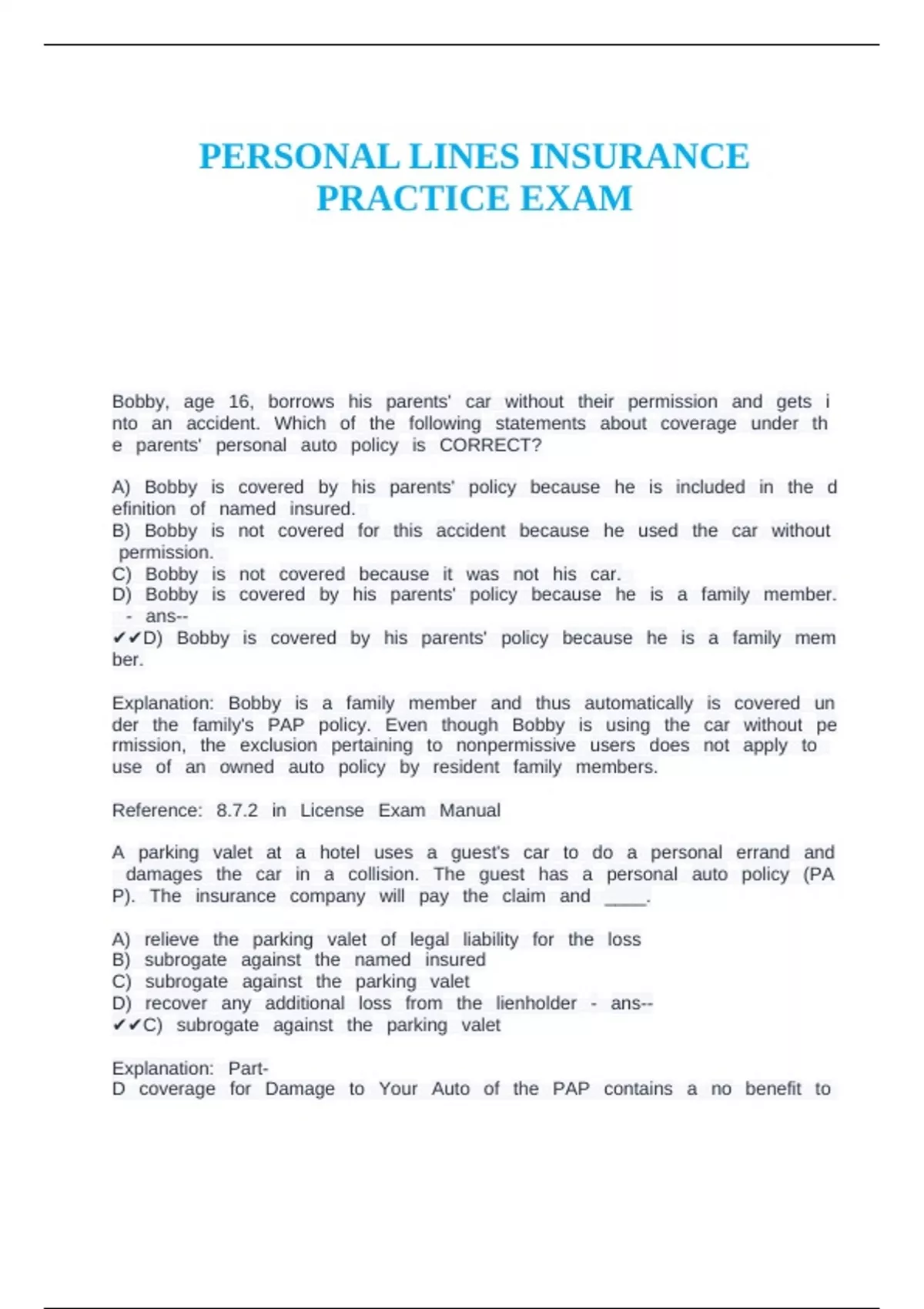 ✔✔D)00Bobby00is00covered00by00his00parents'00policy00because00he00is00a00family00mem