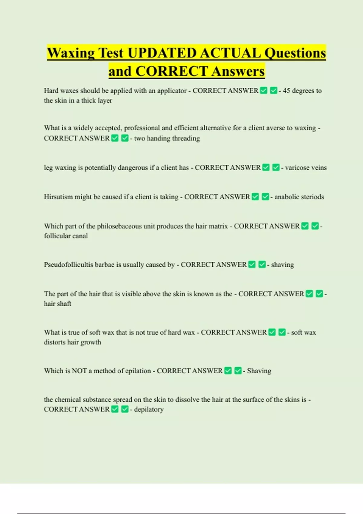 Waxing Test UPDATED ACTUAL Questions