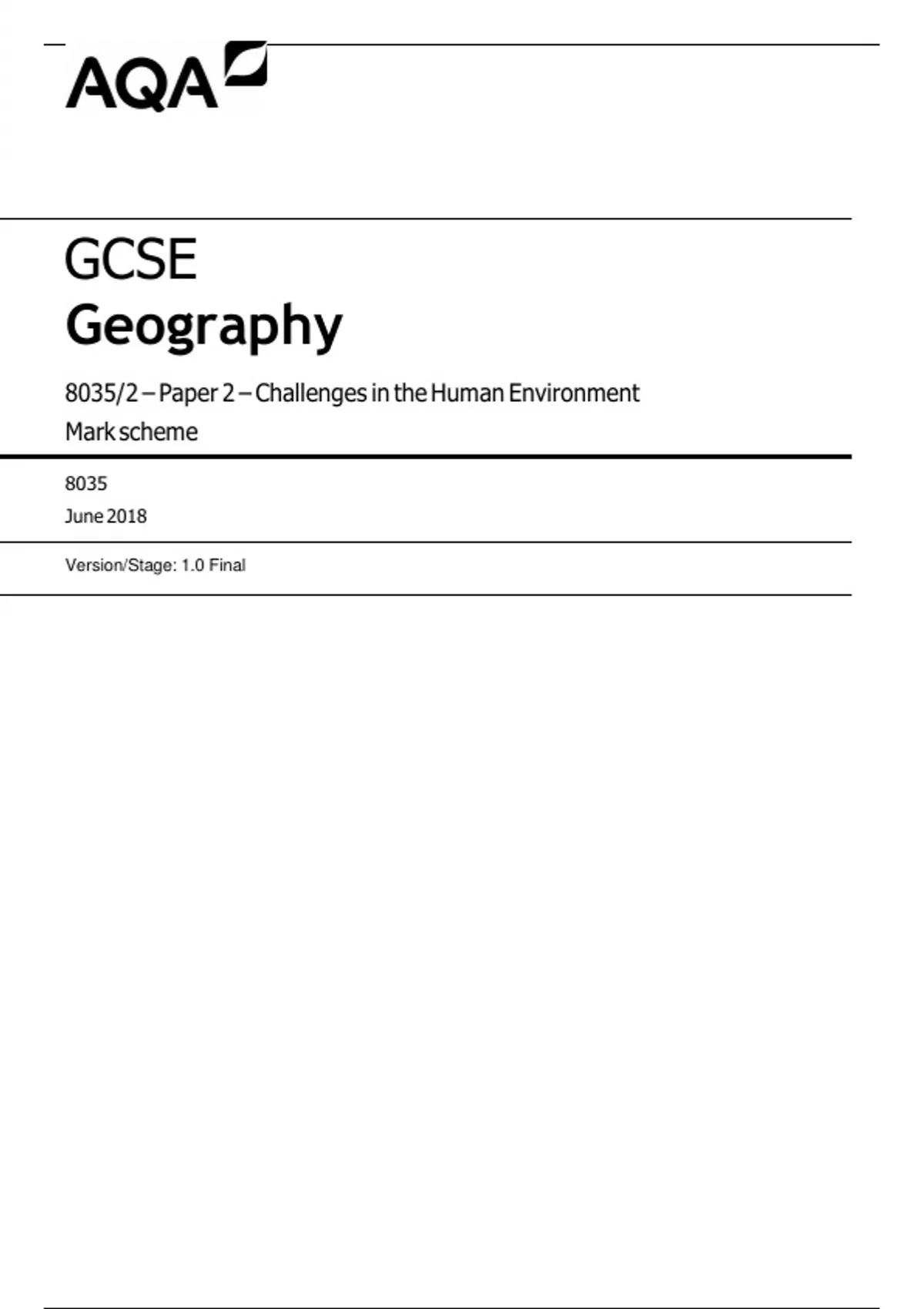 , MARKn SCHEMEn–n GCSEn GEOGRAPHYn –n 8035/2n –nJUNEn 2018