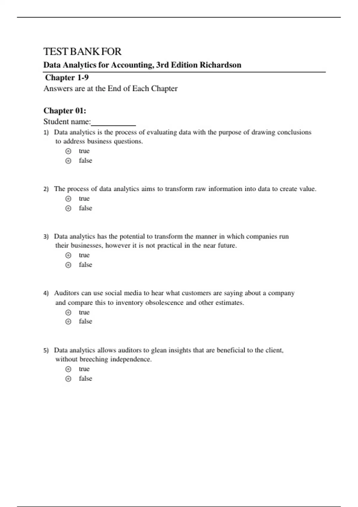 Data Analytics for Accounting, 3rd Edition Richardson