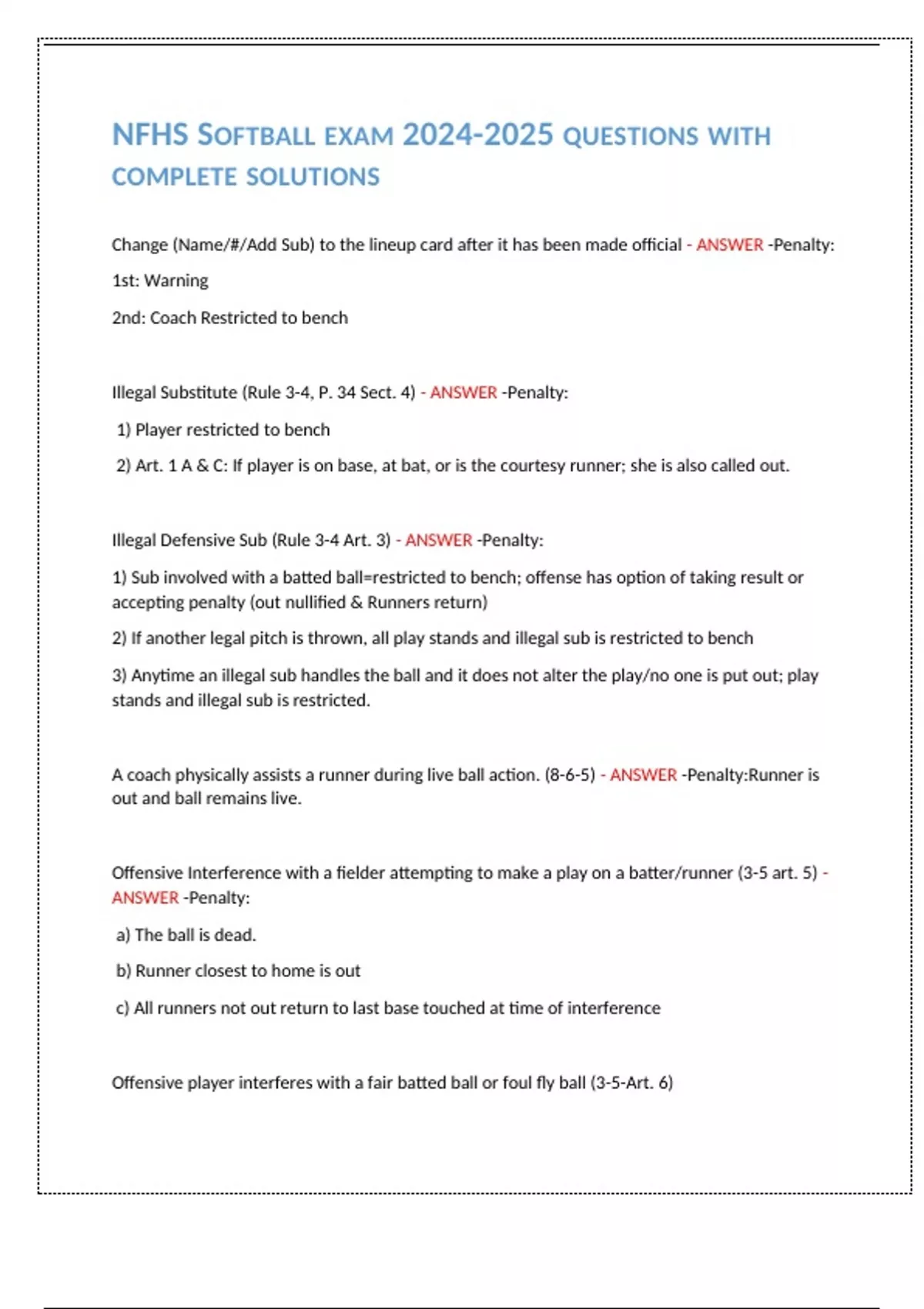 NFHS SOFTBALL EXAM 2024-2025 QUESTIONS WITH