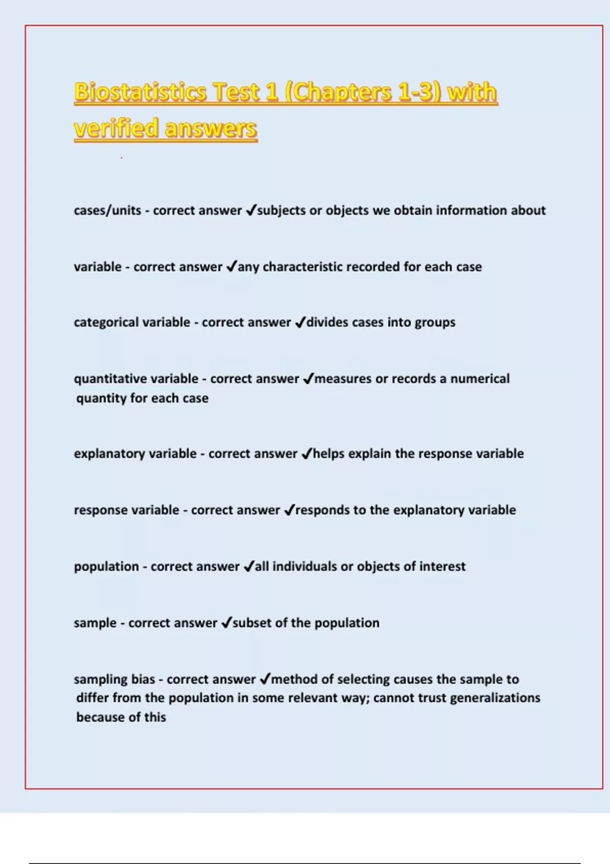 Biostatistics Test 1 (Chapters 1-3) with verified answers