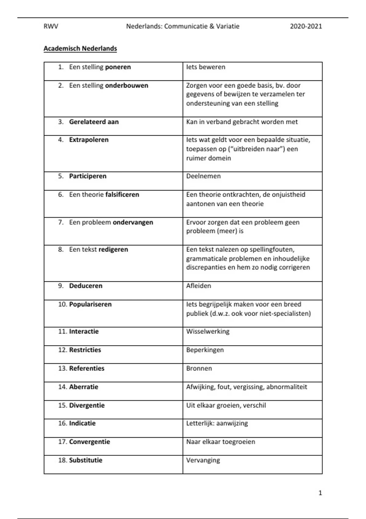 RWV Nederlands: Communicatie & Variatie 2020-2021