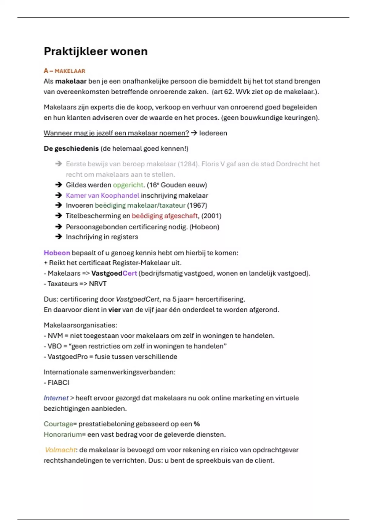 - NVM = niet toegestaan voor makelaars om zelf in woningen te handelen.