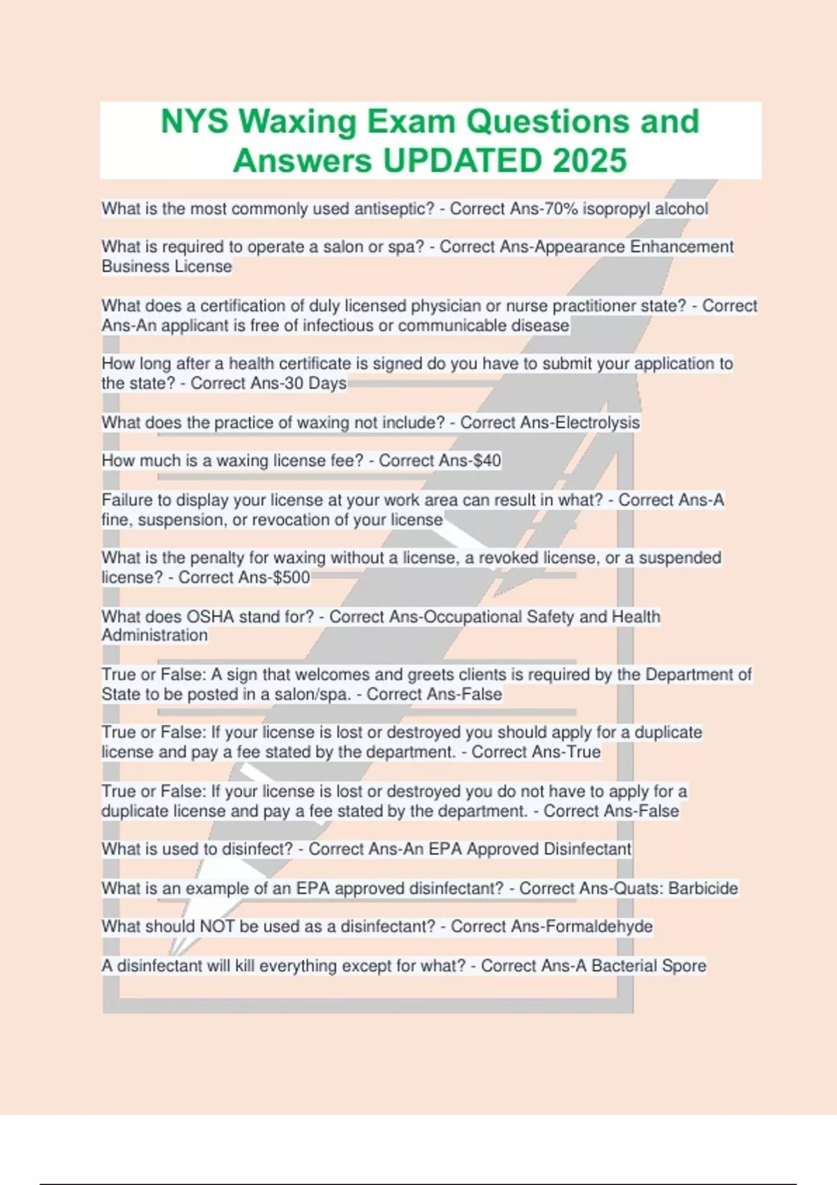 Waxing License to practice waxing. - Correct Ans-True