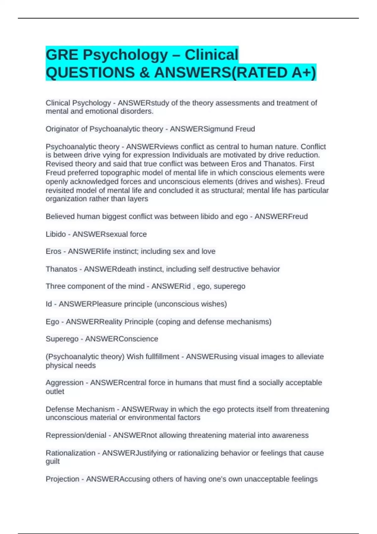 Clinical Psychology - ANSWERstudy of the theory assessments and treatment of