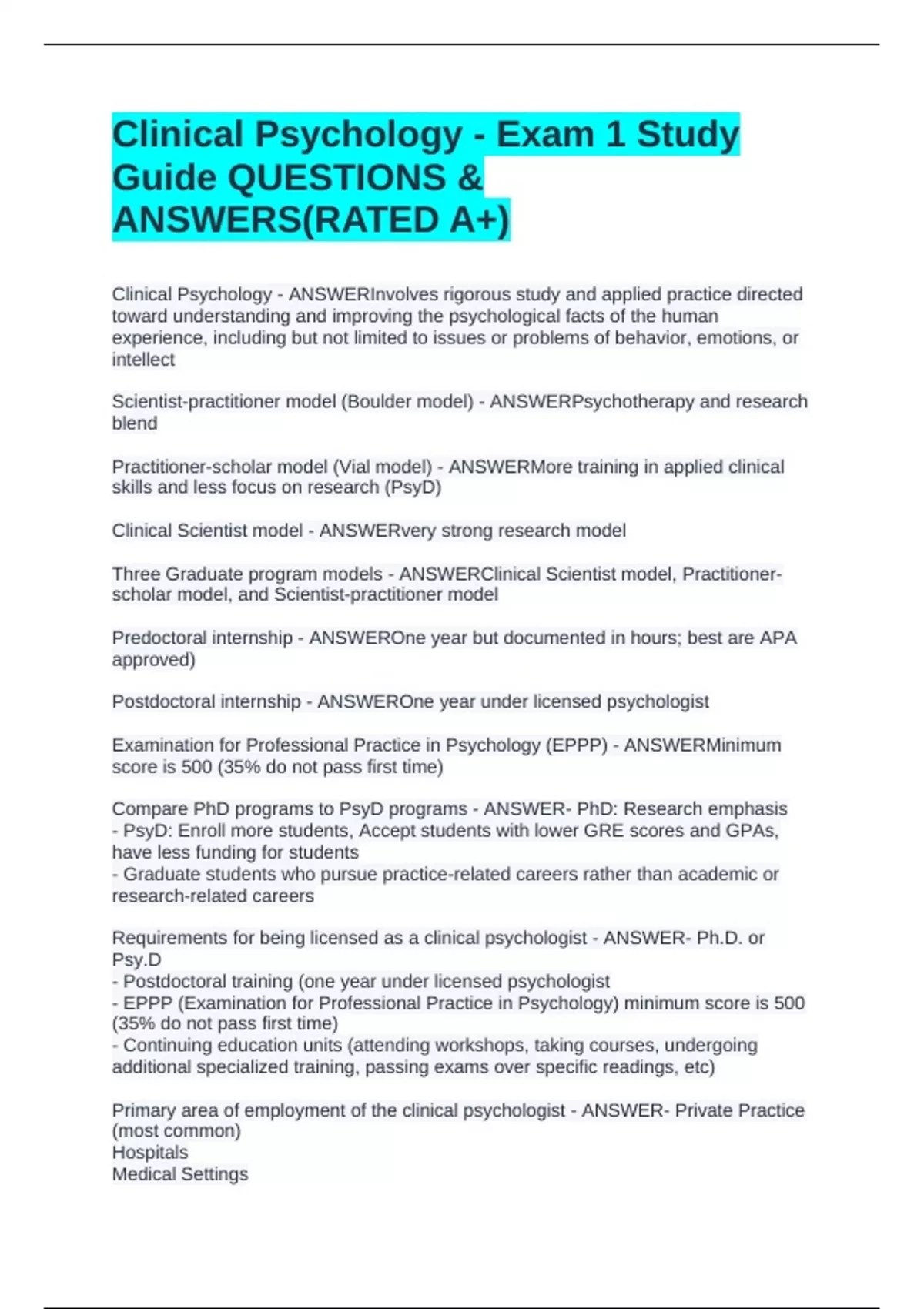 Examination for Professional Practice in Psychology (EPPP) - ANSWERMinimum