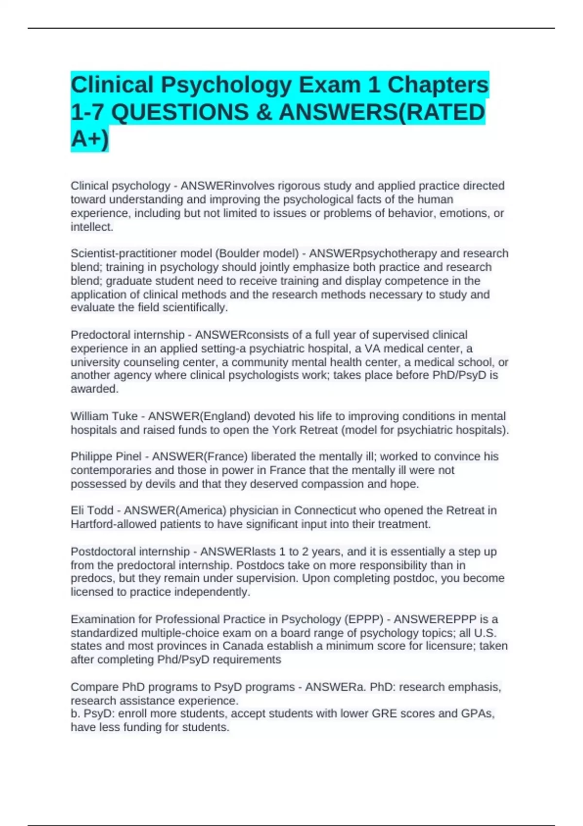 Clinical Psychology Exam 1 Chapters 1-7 QUESTIONS & ANSWERS(RATED A+)