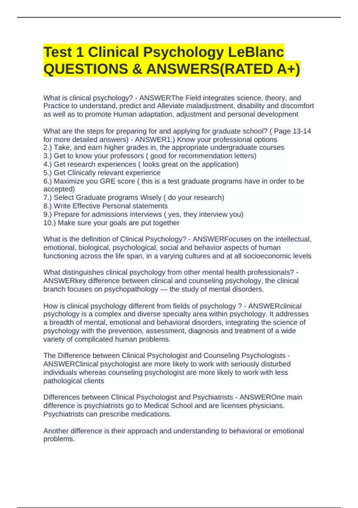 Test 1 Clinical Psychology LeBlanc QUESTIONS & ANSWERS(RATED A+)