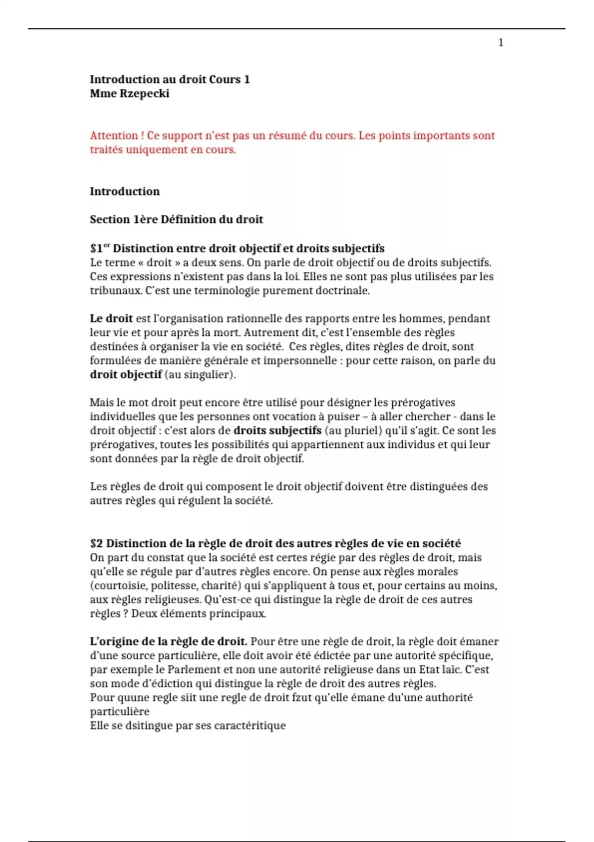 Introduction au droit Cours 1