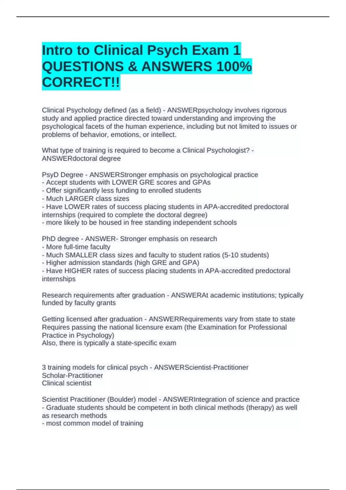 Clinical Psychology defined (as a field) - ANSWERpsychology involves rigorous