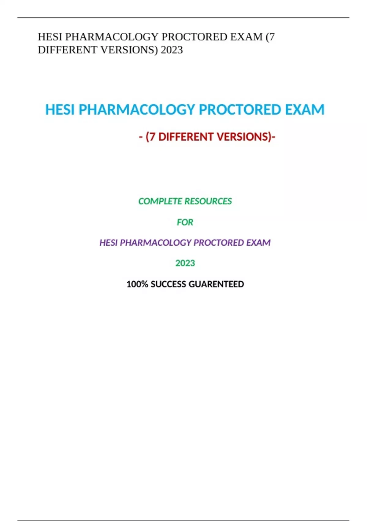 ,HESI PHARMACOLOGY PROCTORED EXAM (7